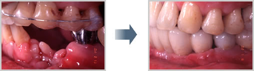 主訴:打撲により、水平垂直に骨が欠損した状態を、インプラントと骨移植により、回復した。