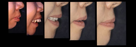 その時の側面顔貌図の変化です。側面写真より仮歯をセットされた直後から口輪筋の活性化がおこり、下口唇辺縁の陥没がなくなりしっかりした口元になったことがおわかりでしょう。